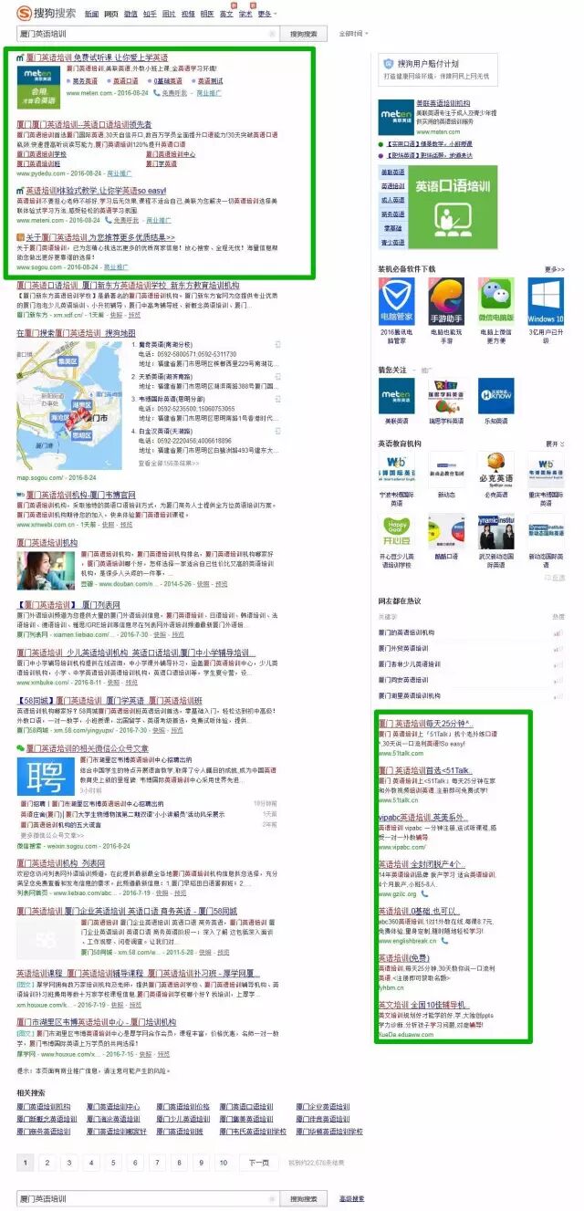 搜狗推广,左侧上方:4个广告位,右侧:7个广告位,还是和以前类似。